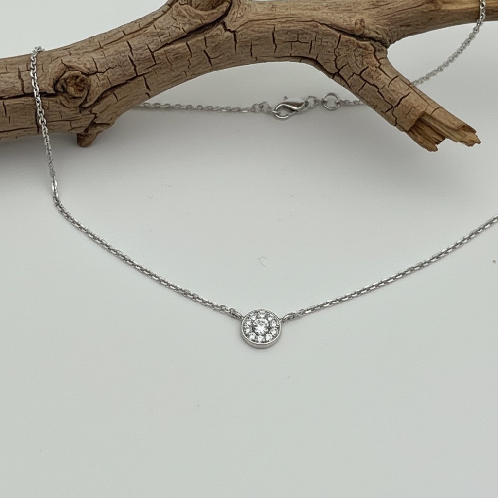 Jemný náhrdelník s kolečkem a malými brilianty bude slušet každé ženě.