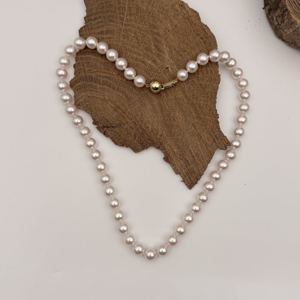 Nádherný náhrdelník z 14ti karátového zlata plný Akoya perel. / perly od Hesse /
