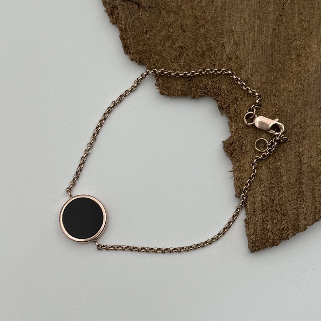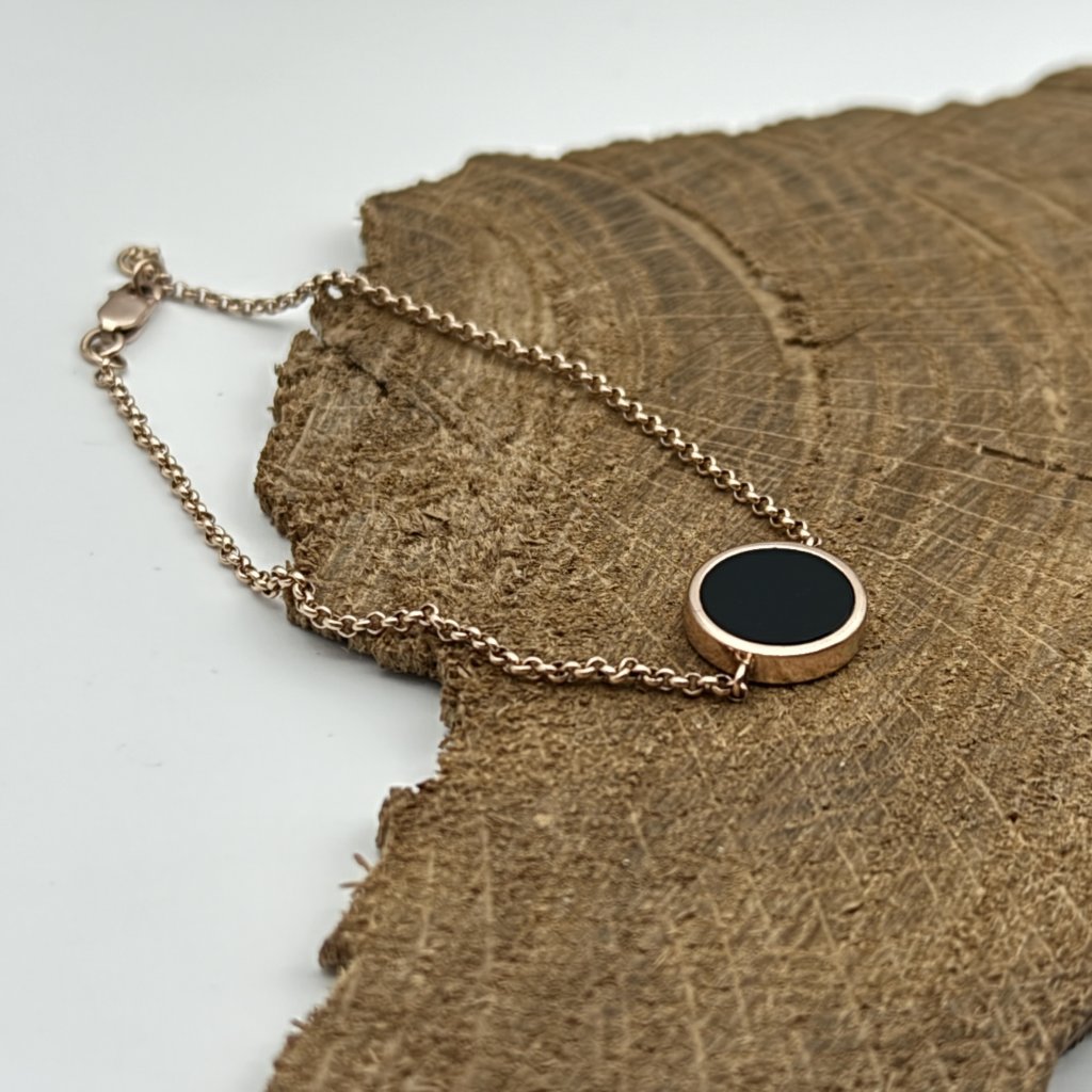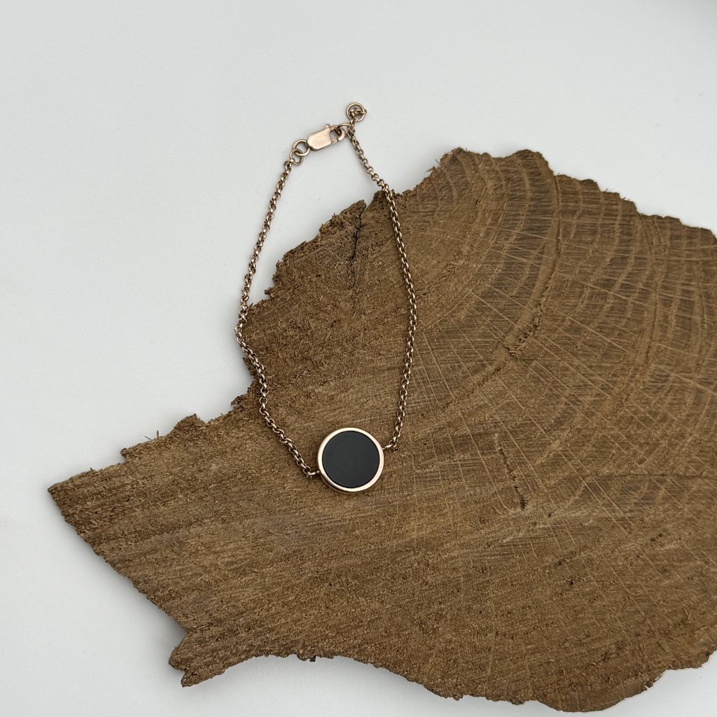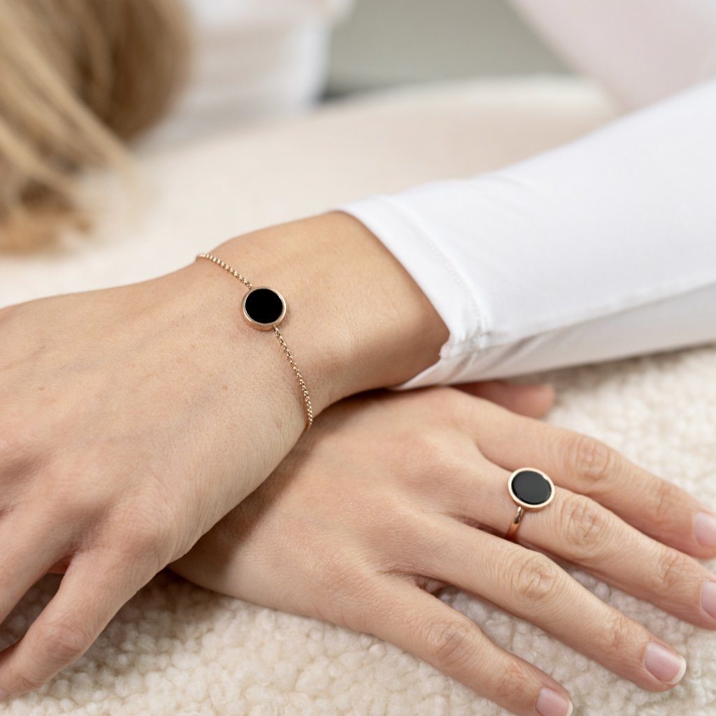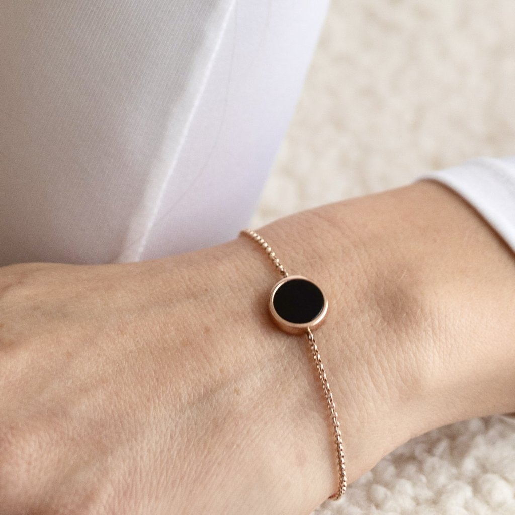 Elegantní náramek s černým onyxem v hladké obrubě. Černý kámen kontrastuje s teplým leskem zlata a vytváří nadčasovou kombinaci, která se hodí jak k dennímu nošení, tak i k večernímu outfitu. Prohlédněte si celou kolekci SLUNCE Z ONYXU.
