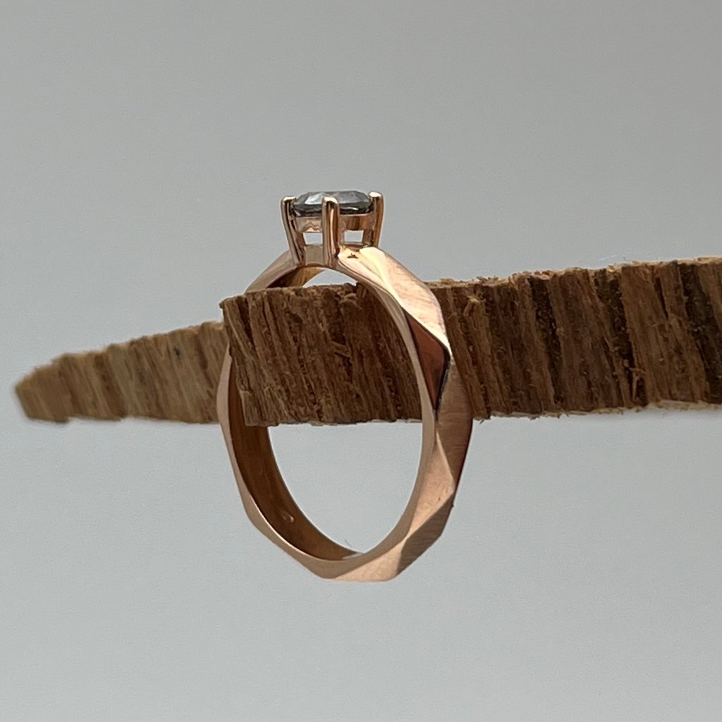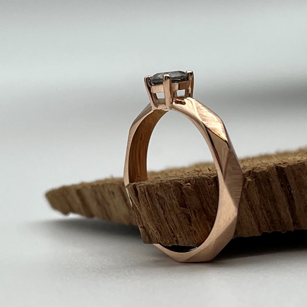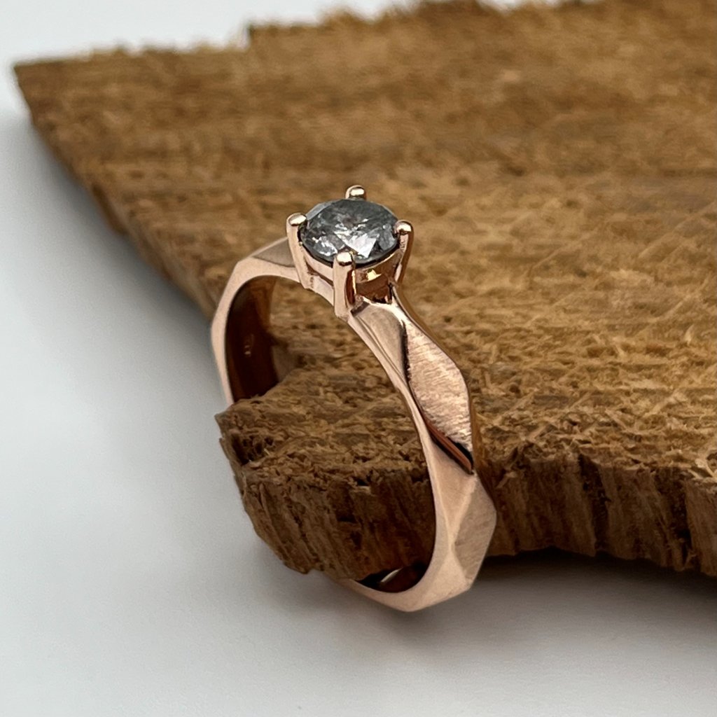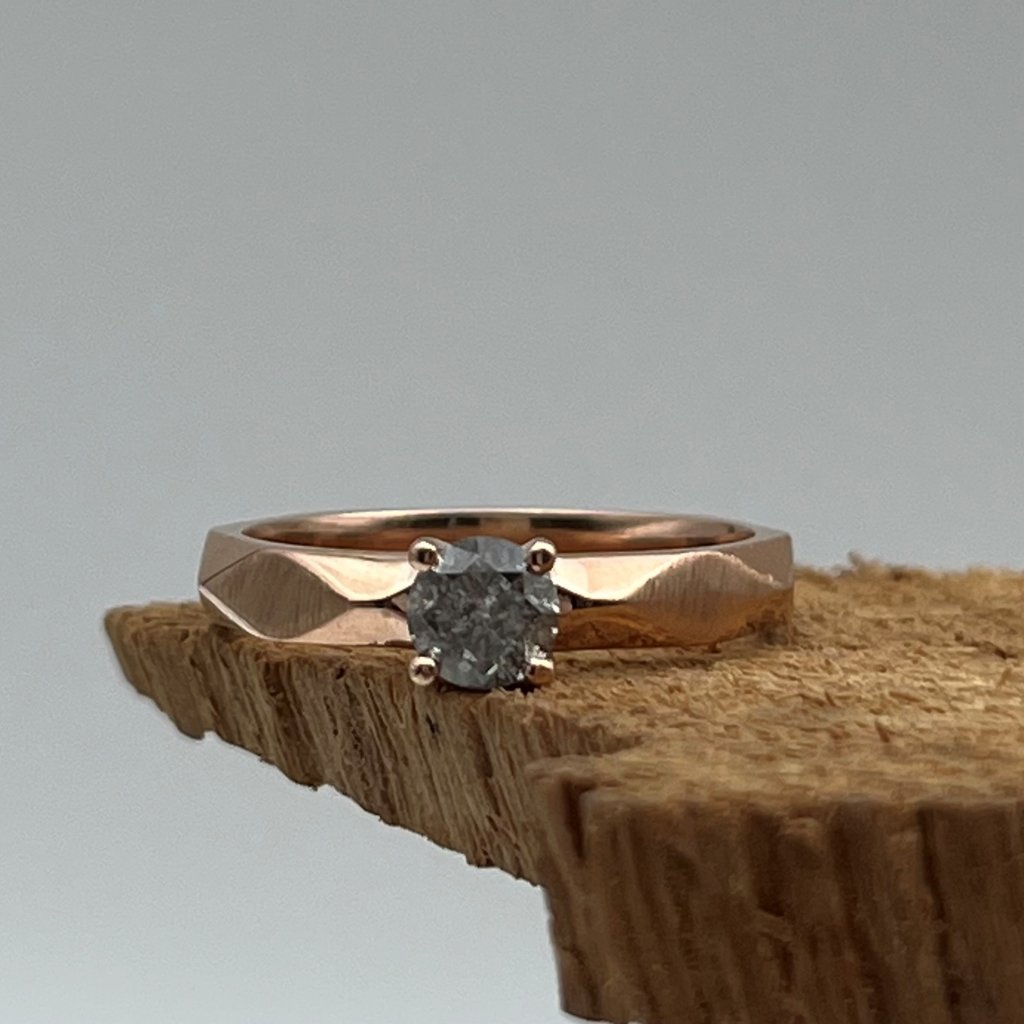Nádherný prsten broušená elegance ozdobený salt&pepper briliantem o velikosti 0,371ct. Broušené plochy mají střídanou povrchovou úpravu v matu a v lesku. Tento prsten bude zaručeně slušet každé ženě!