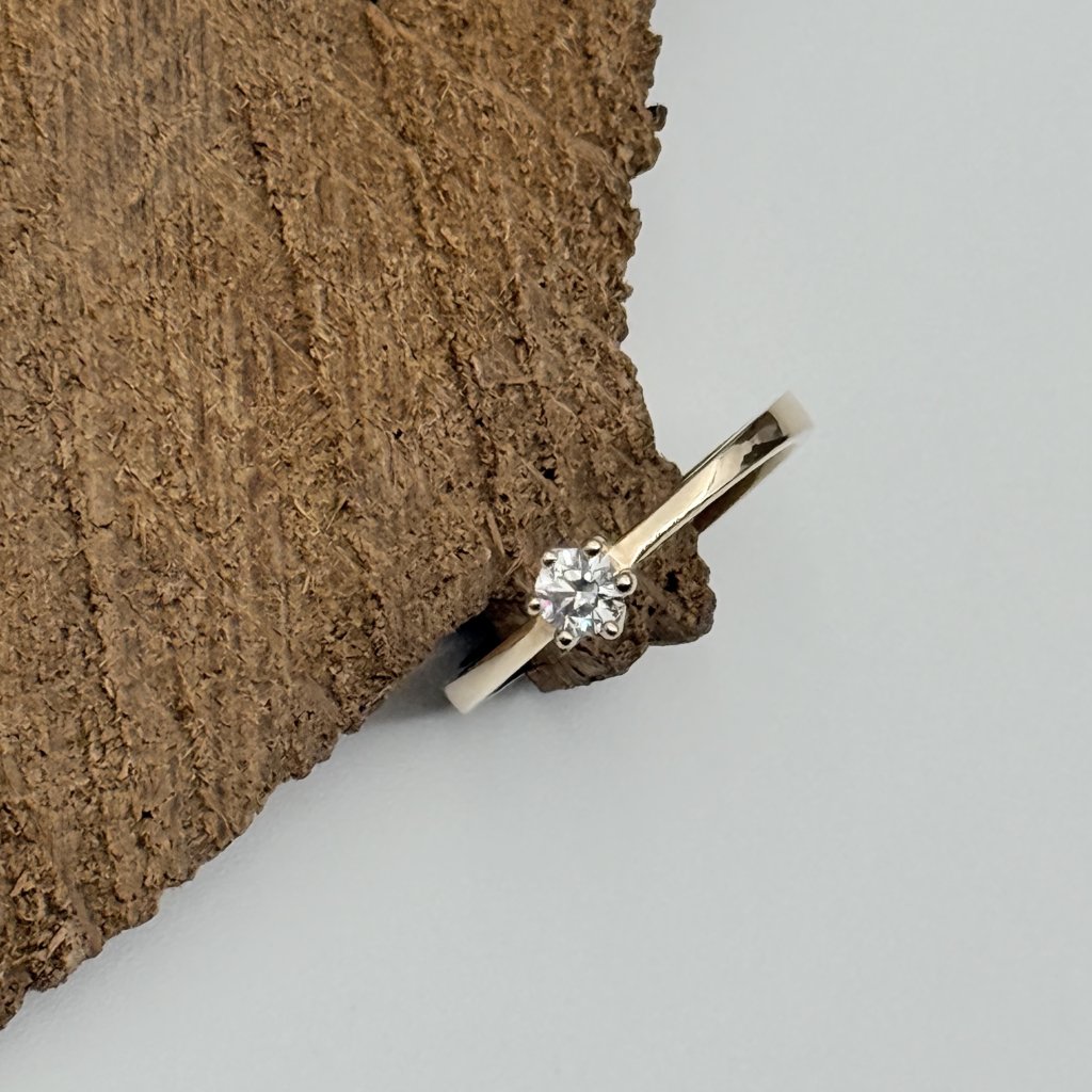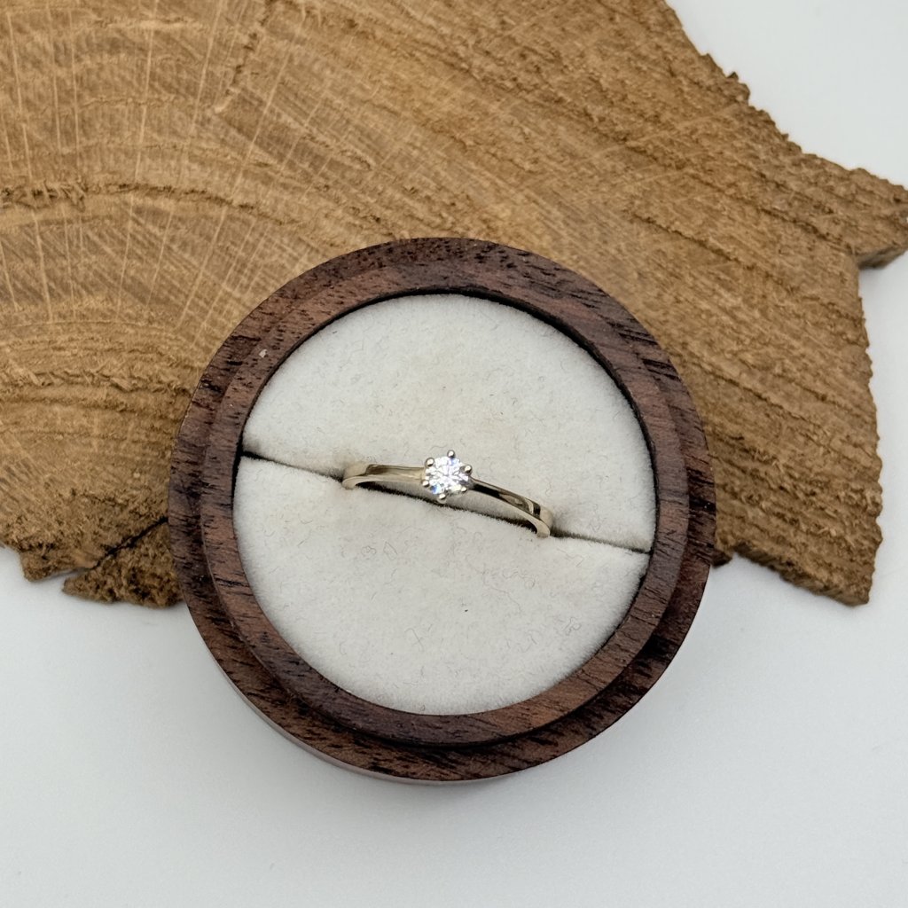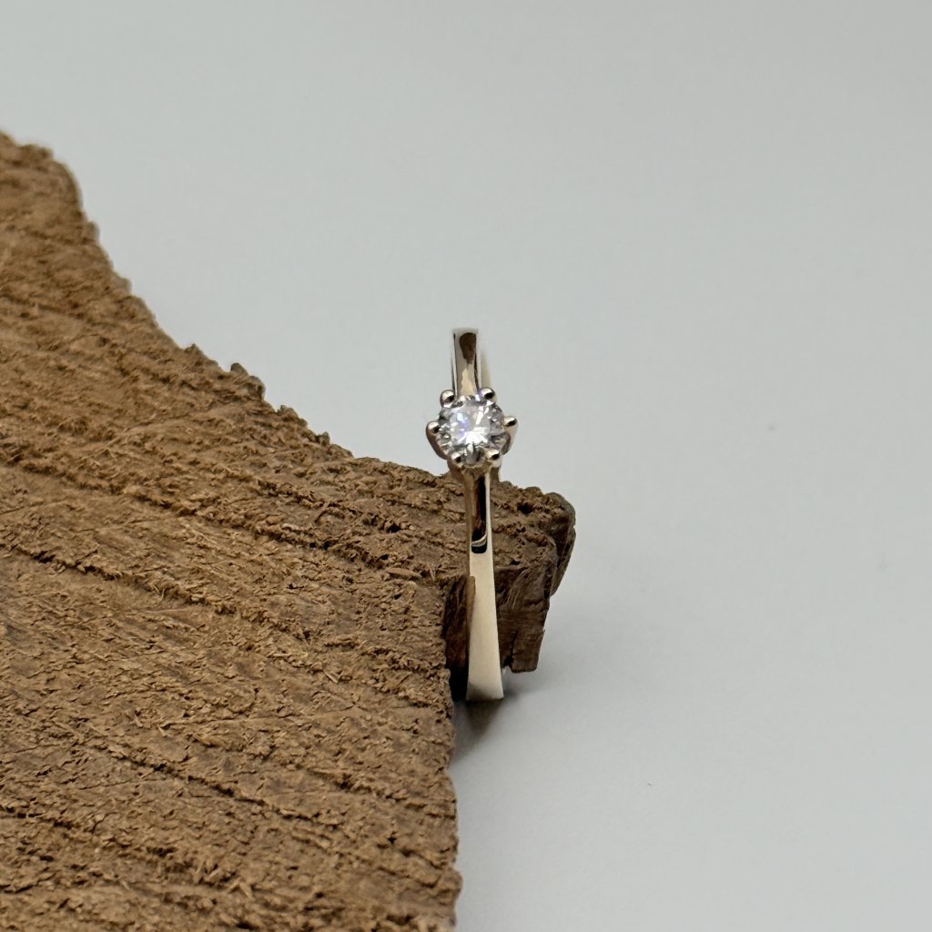 Briliant má celkovou velikost 0,18 ct barvě F a čistotě VS a je uchycený v šesti krapnách.