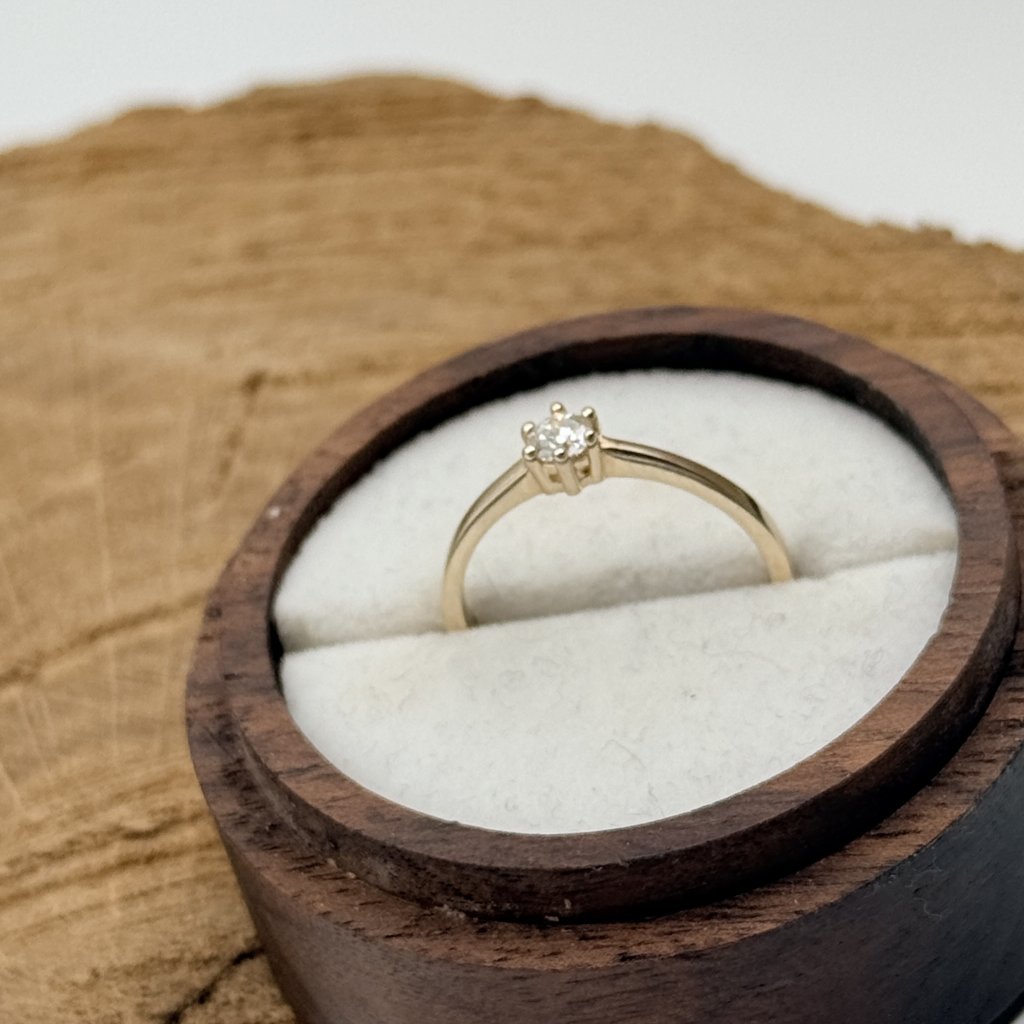 Jednoduchý prsten typu solitér s nižším usazením kamene.