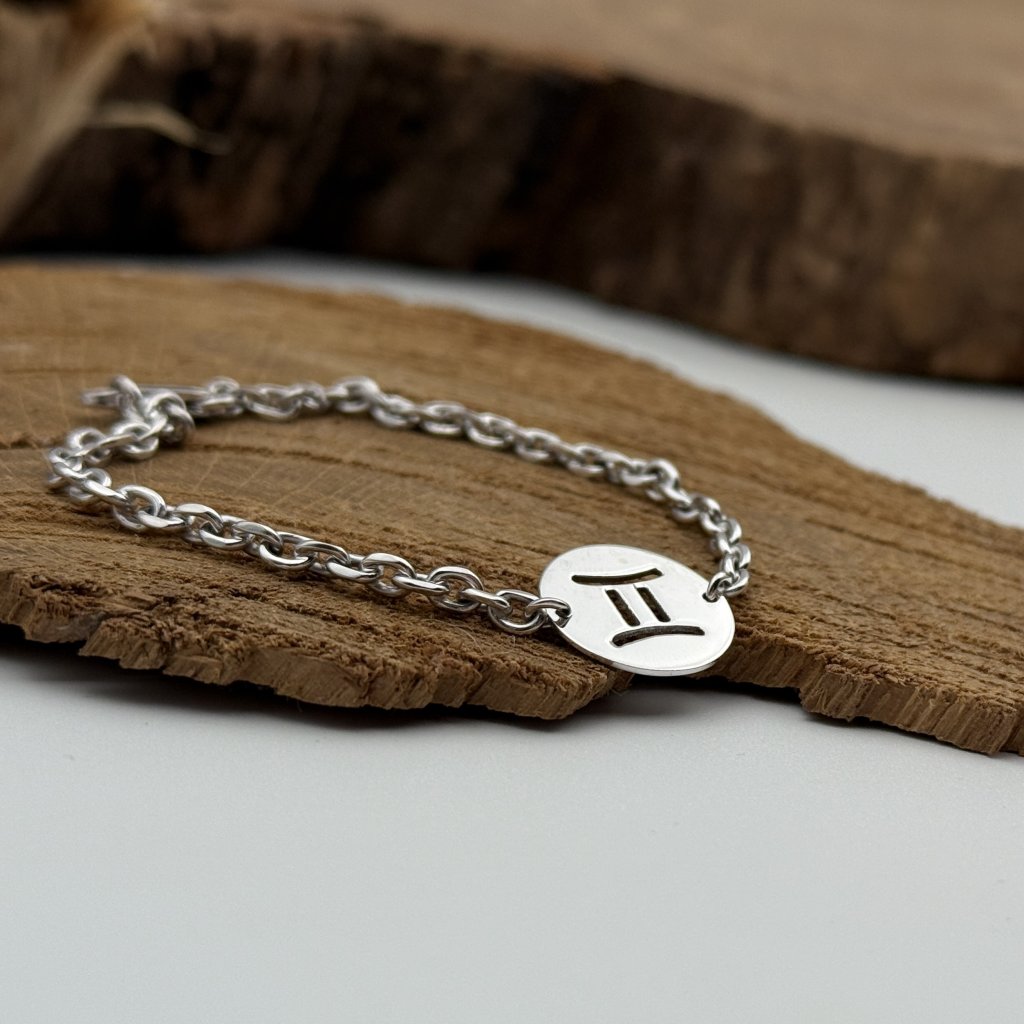 Ručně vyráběný náramek z 14ti karátového zlata s medailonkem se symbolem znamení.